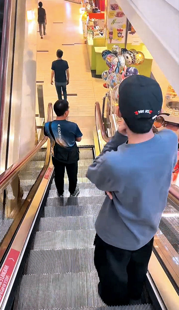 Turn towards the back on the left side of the escalator.