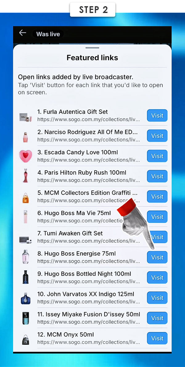 Then, click Visit on the perfume you wish to purchase.