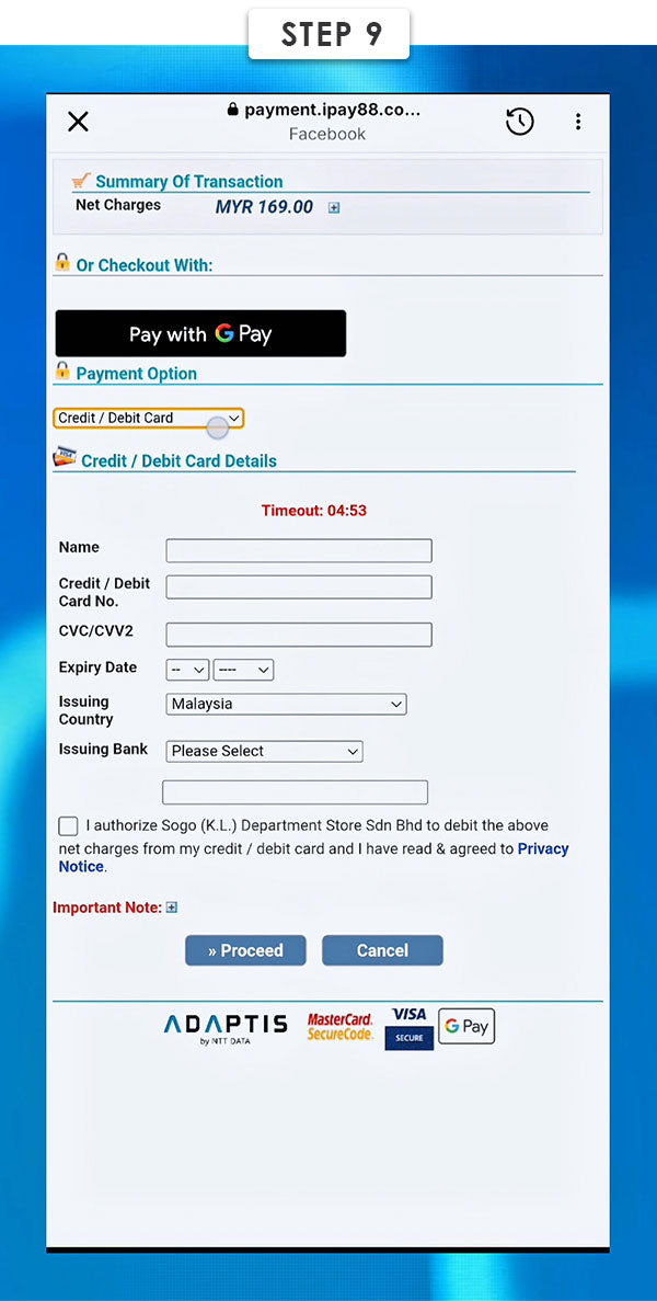Once you reach the payment page, select your preferred payment option and complete the transaction.